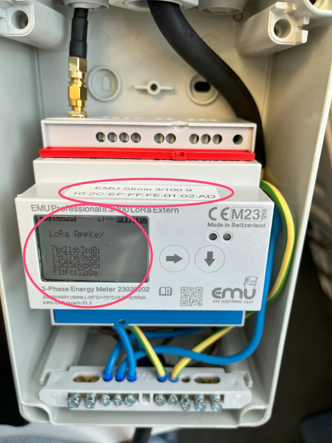 Der AppKey sollte jetzt im Display angezeigt werden. Machen Sie nun ein Foto. Wichtig ist, dass sowowhl der AppKey im Display als auch die SensorId (Klebeetikette auf dem Messgerät) darauf zu sehen sind (beides muss auf einem Foto sein, sonst können wir die Identifikationsnummern nicht zuordnen).