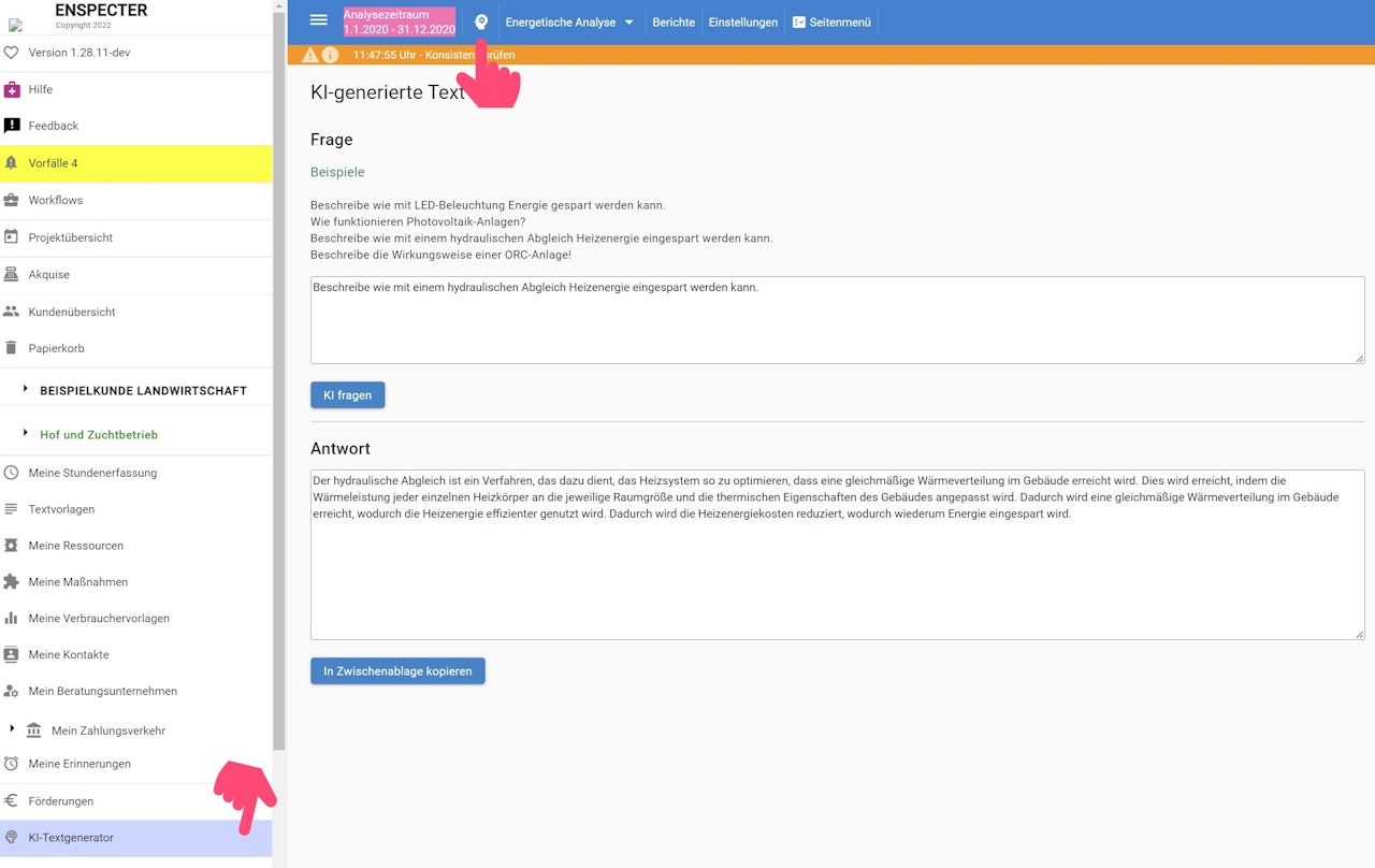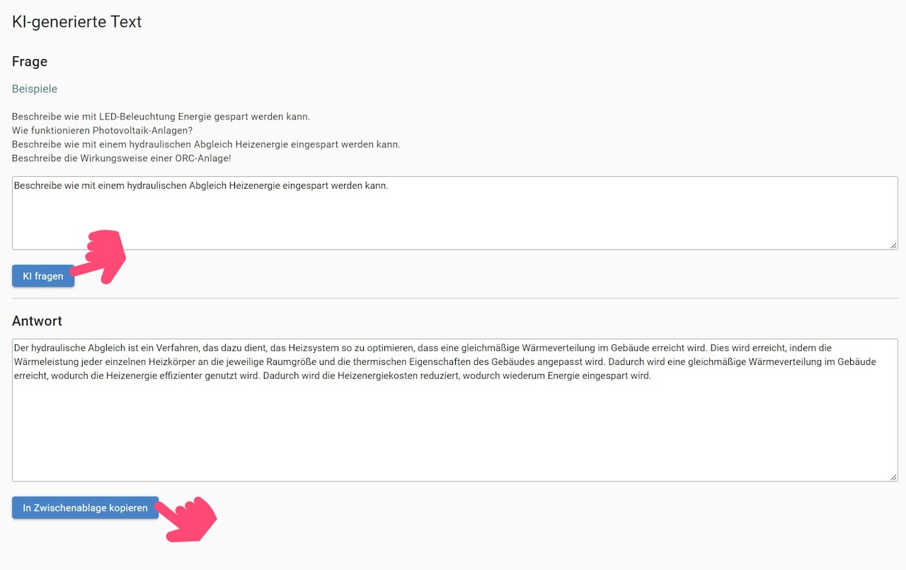 Die Antwort können Sie dann in die Zwischenablage kopieren und vielleicht als Maßnahmenbeschreibung o.ä. verwenden.