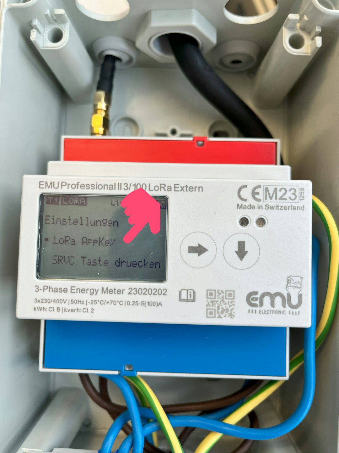In den Einstellungen drücken Sie zwei Mal die ⇩ Taste bis das Untermenü "LoRa AppKey" erscheint.