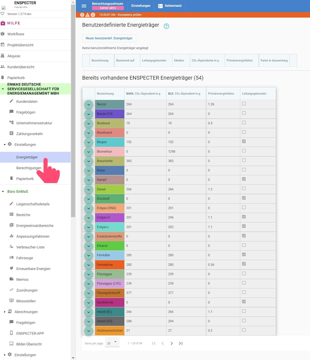 Eine Übersicht über alle Energieträger, die Sie in den Liegenschaften eines Kunden verwenden können, finden Sie auf der Seite "Energieträger".