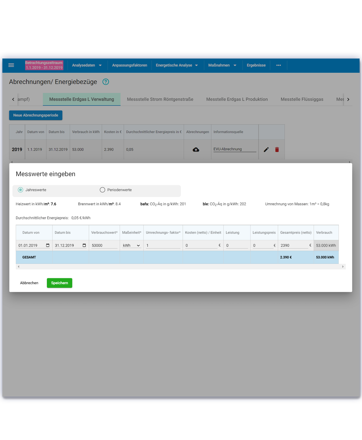 Halbzeit! Der letzte Schritt beim Erfassen der Stammdaten und vor den Bearbeiten der Analysedaten, ist das Eintragen der Abrechnungen und Energiebezüge.
