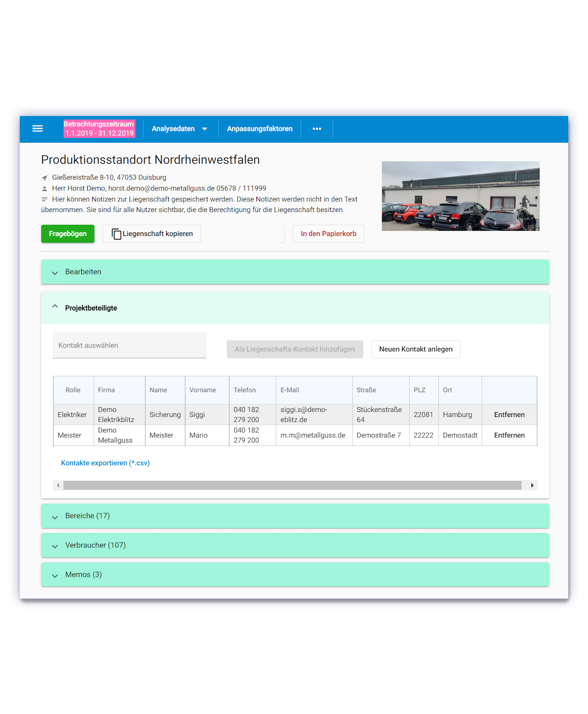 Als erste Schritte werden ein Kunde und eine Liegenschaft für diesen Kunden angelegt. Das wäre schon alles was wir brauchen um mit dem Erfassen von Verbrauchern zu beginnen, aber wir können auch: