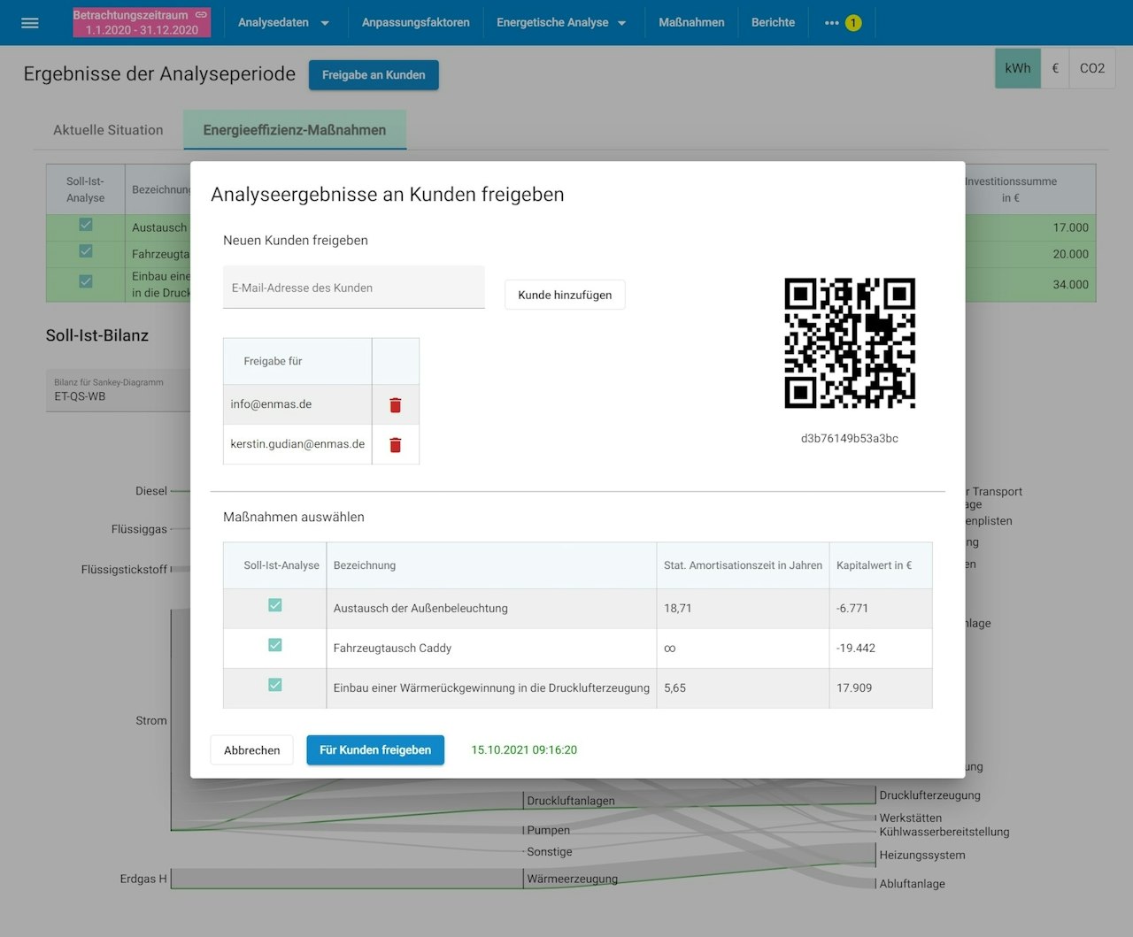 Als Energieberater profitieren Sie von ENSPECTER auch durch das Angebot eines eigenen Kundenportals, das Ihren Kunden zusätzliche Details zu den vorgeschlagenen Effizienzmaßnahmen bietet. Es ermöglicht Ihren Kunden einen umfassenden Einblick in die von Ihnen erstellten Berichte und Analysen.